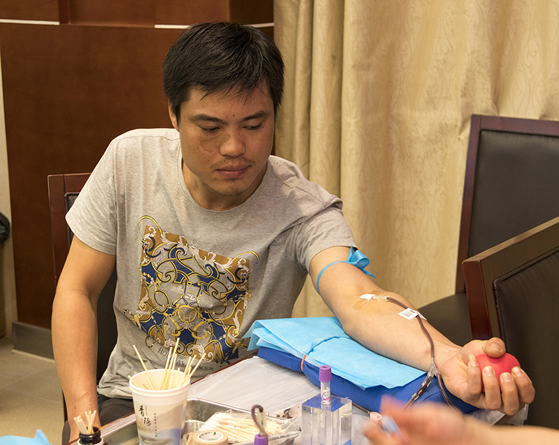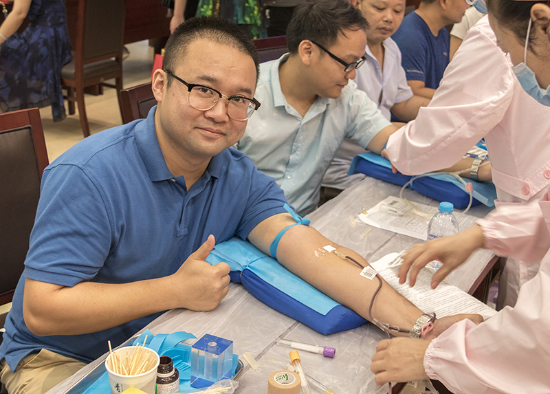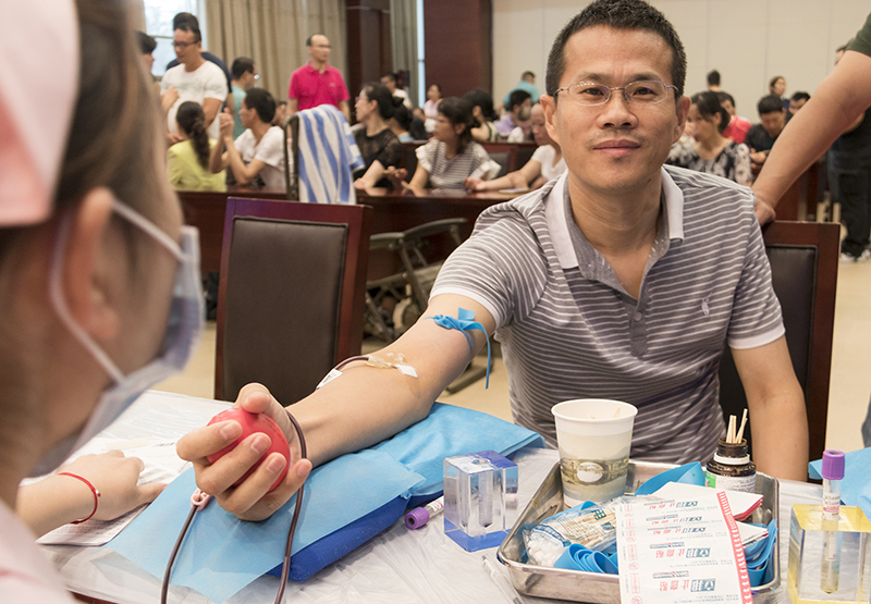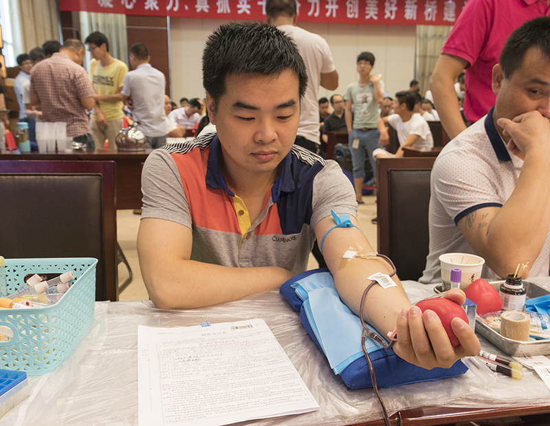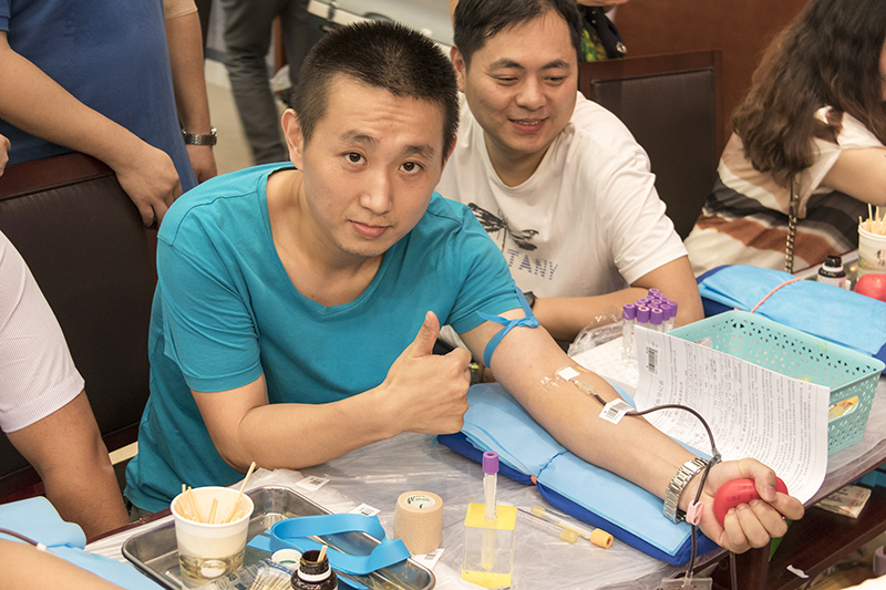 当医生通知检验合格的员工可以开始献血后,大家表现的都十分积极踊跃,车队夏科说:“这是我次献血,不知道是什么感受,当公司号召大家献爱心,我就报名了,整个采血过程没有什么感觉,没什么紧张害怕的。”坐在另一侧的陶伟说:“我是第六次献血了,基本上每年组织的献血我都参加,当然也会去移动献血站献血,我认为这个事情很有意义,不光是献血,凡是这种奉献爱心的活动我都会积极参加。”