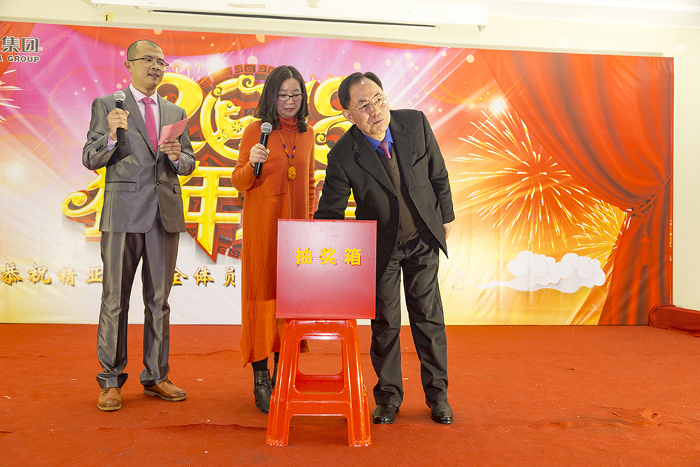 表彰大会顺利闭幕后,伴随着欢快的音乐,全体员工欢聚一堂参加集团春节联欢会。首先,集团总经理张新振致祝酒词。此次联欢会节目精彩纷呈、让人目不暇接。温情的中国传统乐器古筝演奏、绚丽的锦绣江南舞蹈、优美的女声独唱、优雅的男生独唱,节目五彩缤纷,精彩纷呈,中间还穿插了抽奖环节,随着三等奖、二等奖、一等奖、特等奖的抽取,不断掀起年会的高潮。较后,集团董事长陶永生大气磅礴地朗诵了伟大领袖的三首诗词《沁园春·长沙》、《十六字令三首》、《沁园春·雪》。联欢会不仅给大家带来了欢声笑语,同时也让同事之间彼此的心更加贴近。整场联欢会高潮迭起,呈现出精亚这个大家庭的欢乐和谐。