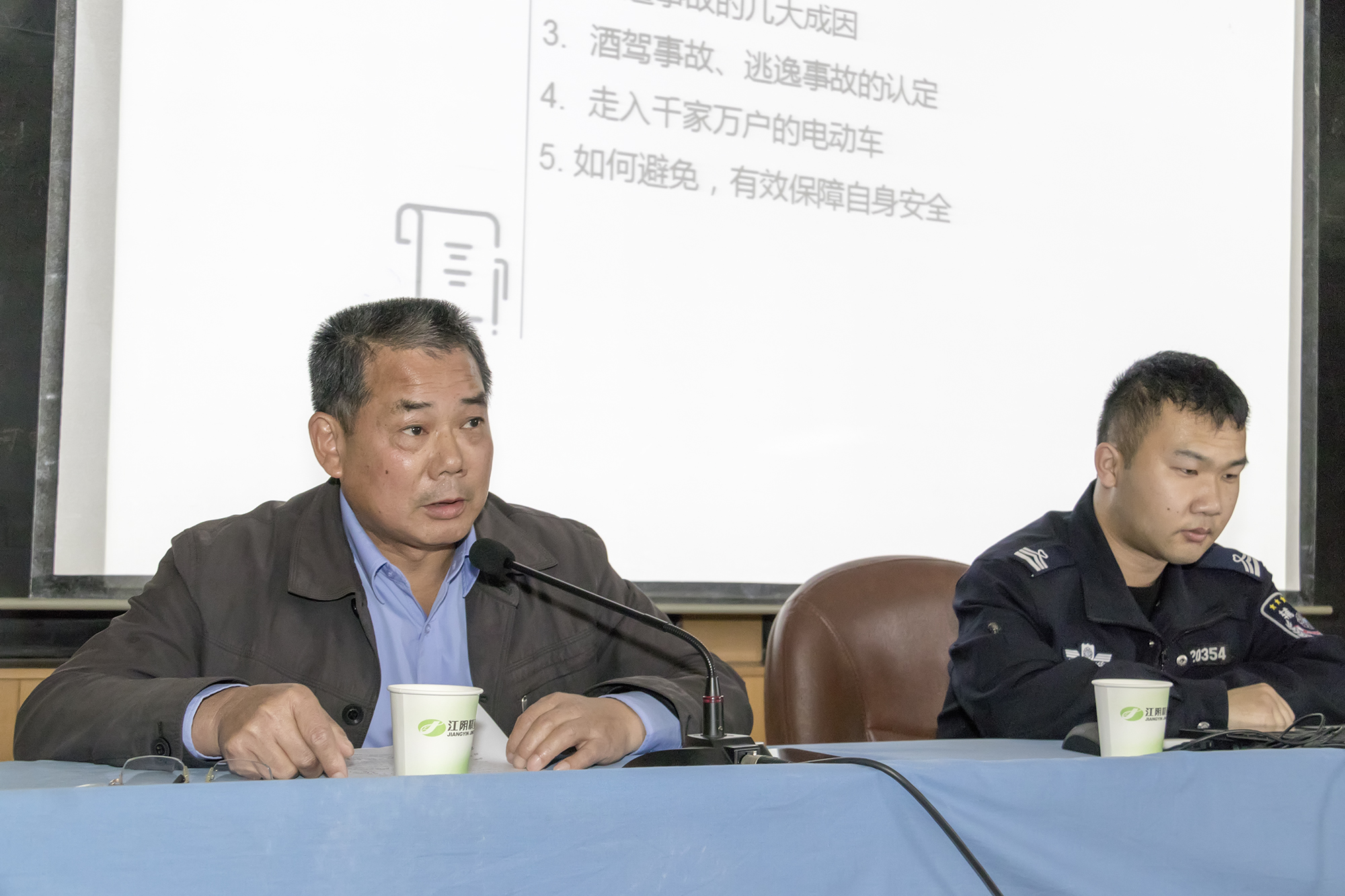为不断提高员工的交通安全意识,较大限度地预防和减少道路交通事故的发生,在集团领导的积极协调组织下,华士交警中队交通安全宣讲员王国才老师在4月23日和25日两次走进精亚集团普及交通安全知识,公司开车的员工及车队驾驶员近200人分批参加了这2天的培训。